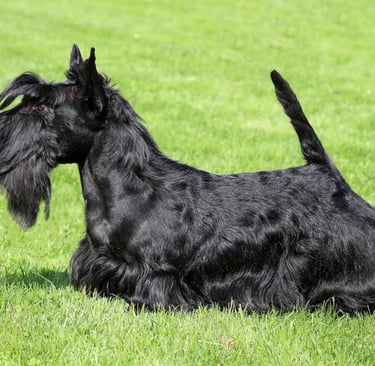 Also called the Scottie, this terrier is small but sturdy. These little dogs are tough and determined, as they were originally bred to hunt vermin such as rats. Scottish Terriers are friendly and loyal, though they may take their time deciding to befriend someone. The Scottie will get along better with older children, as they dislike being prodded and poked, and may snap if irritated.
